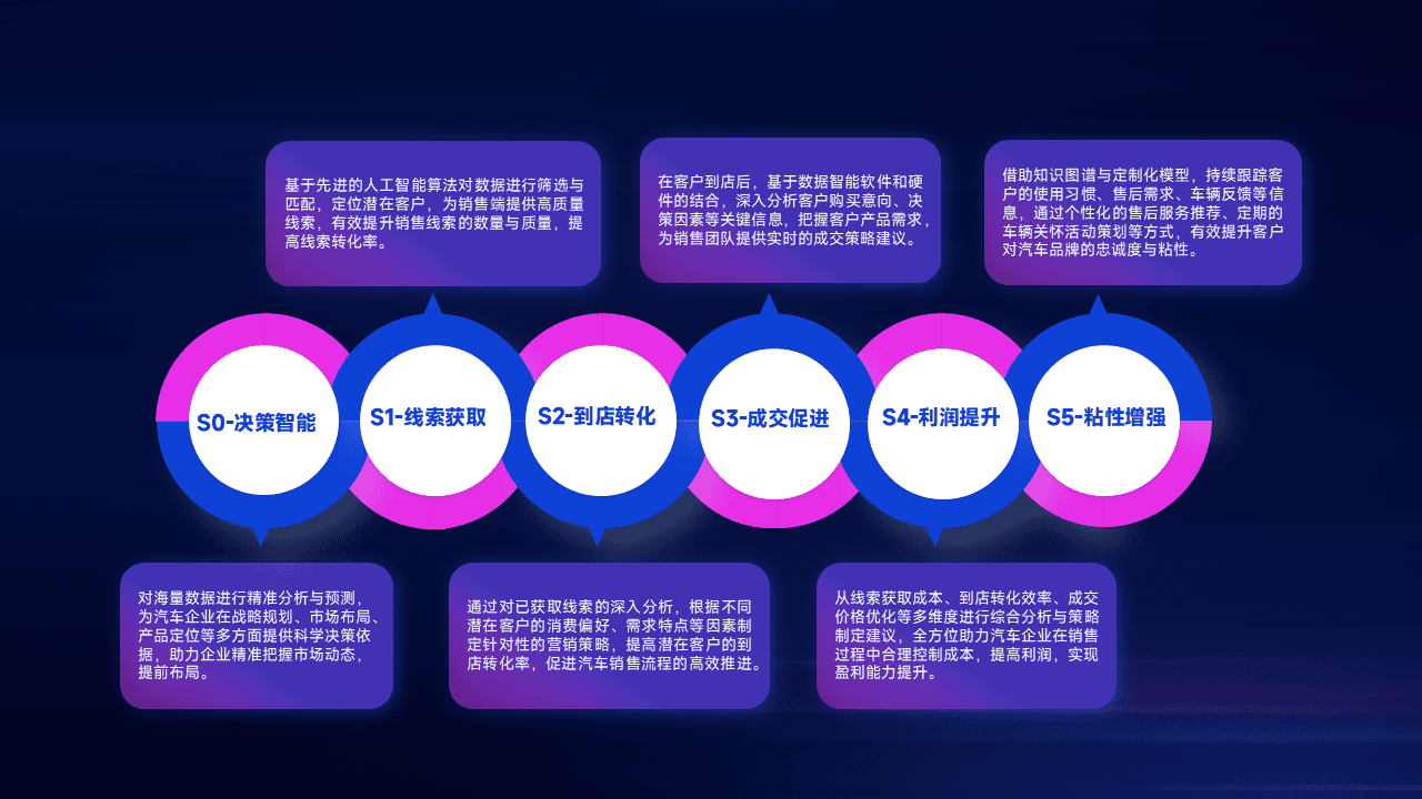 通过拓宽潜在客户来源、、优化线索分配并提高到店转化率,,,以增强销售效率。。同时,,,,利用线索数据不断优化分析模型,,,有效提升转化率,,,扩大营销影响力。。。。